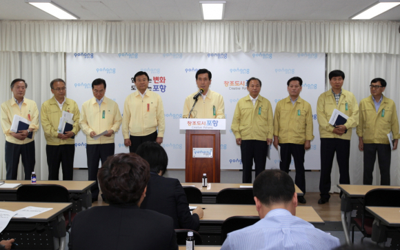 이강덕 포항시장은 22일 ‘메르스 관련 지역경제 활성화 대책’을 발표하고 “105억원 규모의 맞춤형 추경예산 편성을 비롯해 가용할 수 있는 모든 자원을 동원하고 활용해서 가장 큰 영향을 받고 있는 소상공인과 전통시장 관광업계를 중심으로 집중 지원할 계획”이라고 밝히고 “공공기관과 시민사회단체, 기업 등을 중심으로 지역경제 살리기 운동과 같은 시민들의 불안심리 해소를 위한 분위기 확산을 통해 서민경제 활성화와 소비 진작을 이끌어낼 수 있도록 총력을 기울이겠다.”고 말했다.