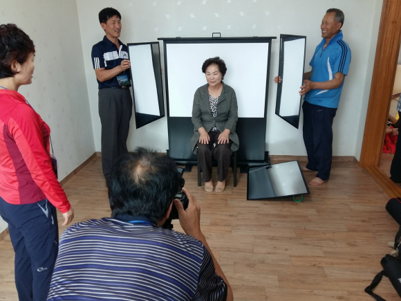 20일 동부1리 마을회관에서 펼쳐진 사진 촬영에는 소문을 듣고 찾아온 30여명의 어르신들이 마을이장과 함께 함박웃음을 머금은 채 순서를 기다리며 고마움을 전하고 있다.