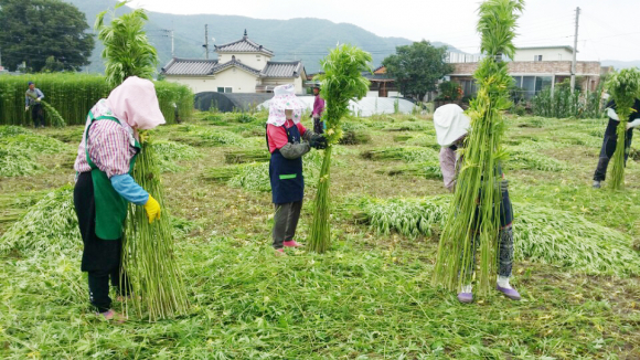 가뭄을 이겨낸 금소마을의 안동포 원료 대마(삼) 수확 열기 !!