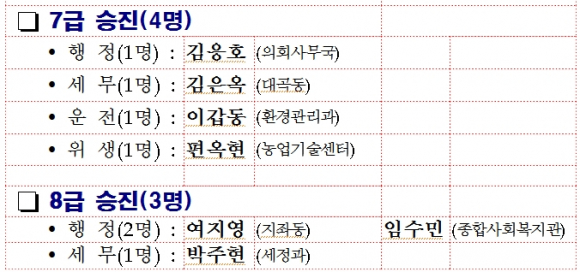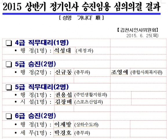 김천시, 승진의결 결과