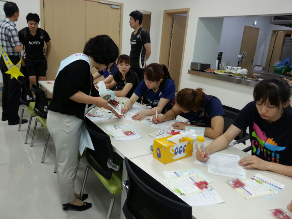 장소연 선수를 비롯한 20여명의 선수와 코칭스테프는 김천시 역점시책인 15만 인구회복 운동의 중요성에 대해 깊게 공감하고, 주소이전을 위한 전입 신고서를 작성하는 등 이전공공기관 직원들의 김천사랑 운동에 솔선수범을 보였다. 김삼현 전략경영팀장은 “배구단이 김천시로 연고지를 이전함에 따라 성공적인 정착을 위한 김천시민들의 많은 사랑과 관심을 부탁드리며, 배구단도 ‘스포츠 중심도시’ 김천시와 윈-윈 할 수 있도록 다각도로 노력할 예정이다.”며 연고지 김천에 대한 애정과 기대감을 보였다. |