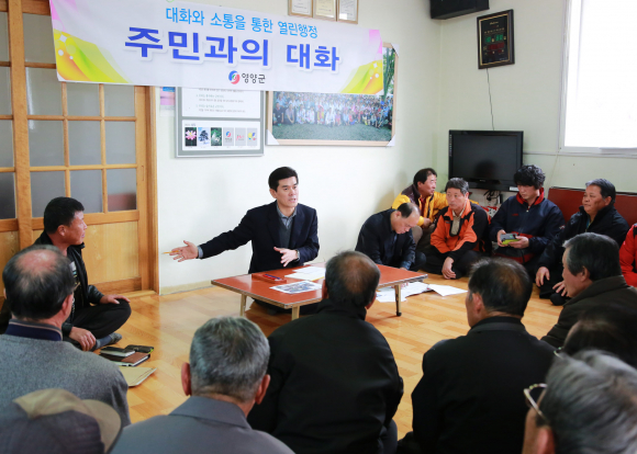 소통으로 공감하는 군민과 함께하는 행정 민선시대 자치단체장의 가장 중요한 화두는 소통이라 생각하고 군민들의 어려움을 듣고 해결해주고, 원하는 바를 찾아 군정의 변화와 혁신에 대한 공감대 형성을 위하여 군민들을 직접 찾아가서 ‘주민과의 대화’의 시간을 가졌다. 재임기간 동안 전체 114개리를 모두 찾아가서 군민과 함께하는 군정을 펼쳐나갈 계획이라고 한다.