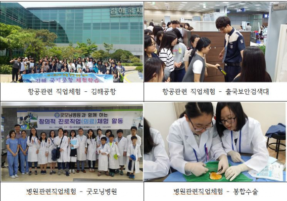 지난 5월의 김해공항을 방문하여 항공관련 직업 체험과 굿모닝병원에서의 의료관련 직업체험은 우리 지역의 청소년들에게 견학이 아닌 진로체험이라는 새로운 장을 열어준 특별한 경험이었습니다.