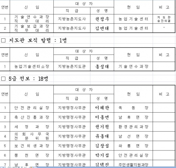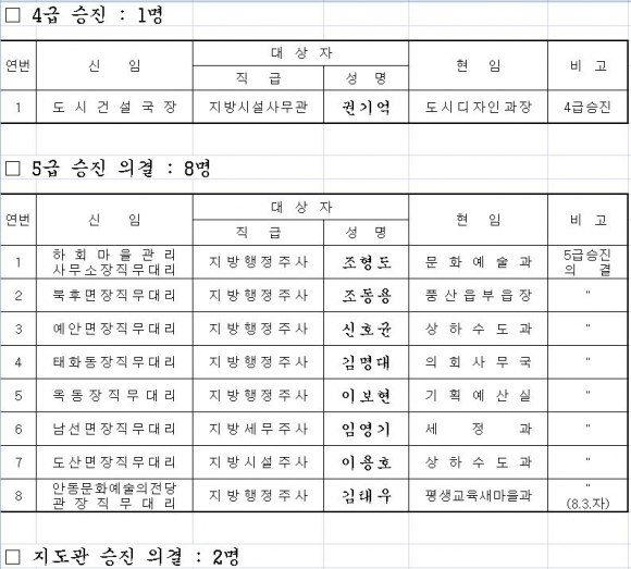 안동시, 민선6기 2주년 간부공무원 인사 단행