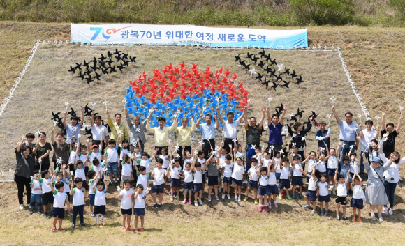 |  | | | ⓒ GBN 경북방송 | | 영덕군(군수 이희진)은 광복 70주년을 축하ㆍ기념하며 ‘나라사랑, 태극기사랑 70일 운동’에 동참하기 위해 지난 6월 29일 새영해어린이집과 성심유치원 원생 60여명과 조남월 부군수, 군민 40여명 등 총 100여명이 참석한 가운데 ‘예주 바람개비 태극기’ 게양식을 개최했다.