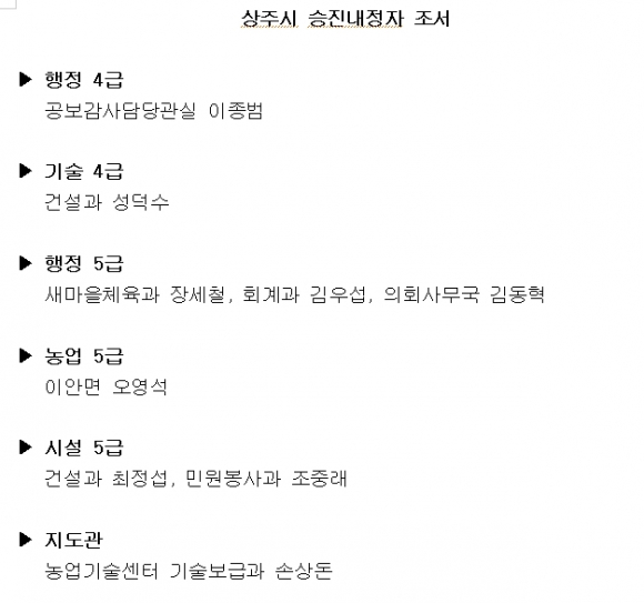 상주시, 2015년 하반기 정기인사 승진 의결(내정)자 조서
