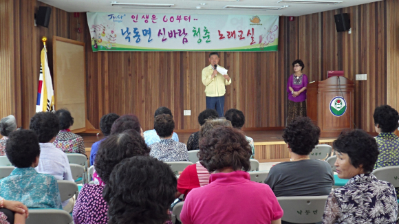 상주시 낙동면(면장 권영철)에서는 3일 낙동면민회관 2층 대회의실에서 노래교실 회원 60여 명이 참여한 가운데 ‘2015년 하반기 청춘노래교실 개강식’을 가졌다.