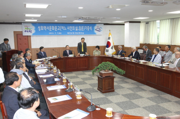이번 기증식에는 7일 오전 11시 군청 영상회의실에서 이현준 군수, 김기한 교육장을 비롯한 서울거주 출향인 황병태, 김선도, 변우량, 박찬중 등 많은 원로들이 참석한 가운데 ‘어느 시인의 삶, 입춘’이란 제목으로 출간한 성희역사문화문고 제1집 600권을 전했다.