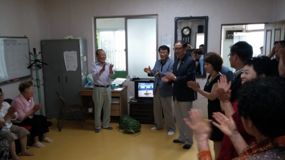류장한 자산동장은 시원한 수박 드시고 올 여름도 건강하고 시원하게 보내시길 기원드리며, 동주민센터에서도 어르신들을 위해서 지원을 아끼지 않겠다며 격려의 말을 전했다.