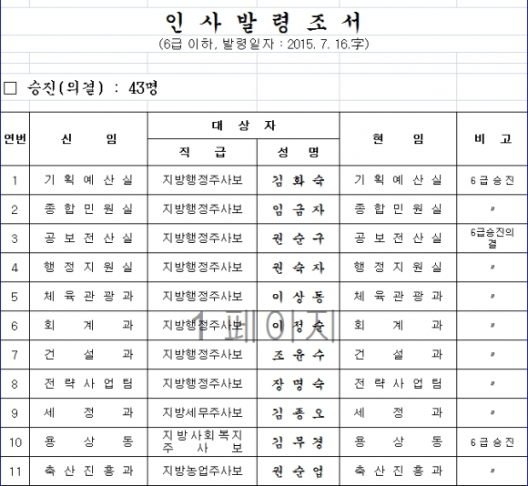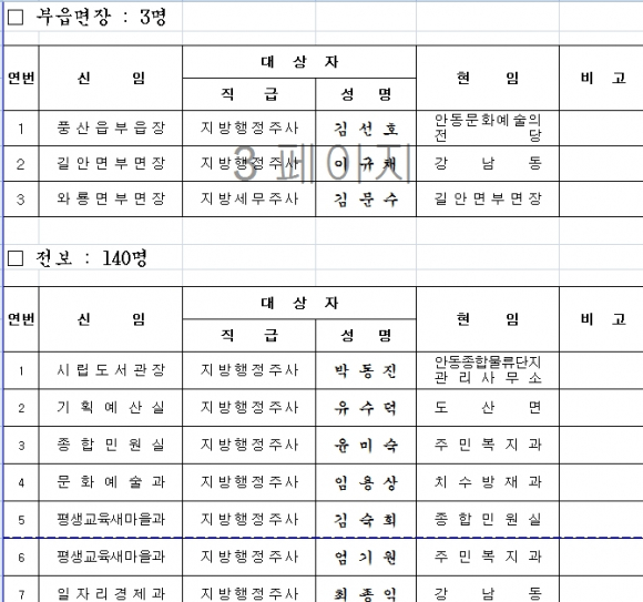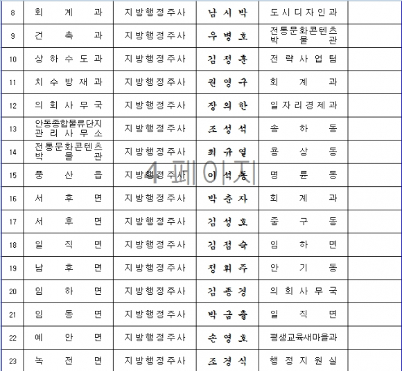 안동시, 인사발령조서(1)