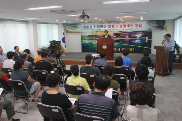 지난 4월부터 업체별 맞춤형 현장방문 서비스 교육 및 경영진단을 목표로 실시하고 있는 이번 교육은 맛 고을 식당으로 거듭나기, 고객응대 요령 및 경영 마인드 제고, 경영진단으로 변화된 모습, 이미지 브랜드화를 위해 친절교육과 경영개선을 통해 외식업 수준을 한 단계 높인다는 계획이다.