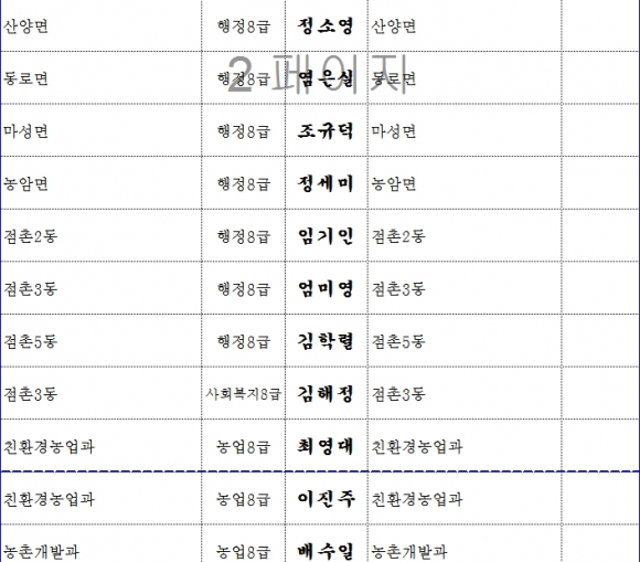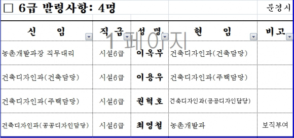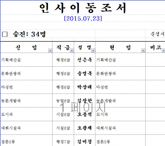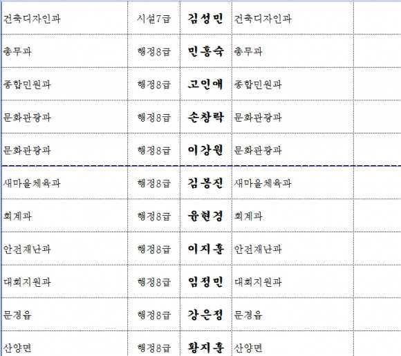 문경시, 인사이동 조서