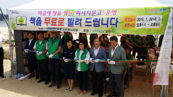 포항시 새마을문고(회장 박연옥)는 24일 영일대해수욕장에서 문고회원 50여명이 참여한 가운데 여름철 피서객 여가선용을 위한 피서지문고 개장식을 가졌다.