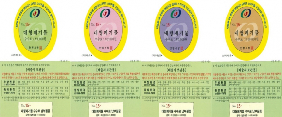 시민들은 가까운 쓰레기봉투 판매소에서 대형폐기물 수수료 단가표를 기준으로 금액에 맞게 스티커 구입하고, 버리는 물건에 붙여서 쓰레기 배출장소에 배출하면 된다.