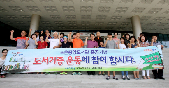 포항시립 어린이영어도서관이 28일 포은중앙도서관 준공을 기념한 범시민 도서기증운동 캠페인을 실시했다.