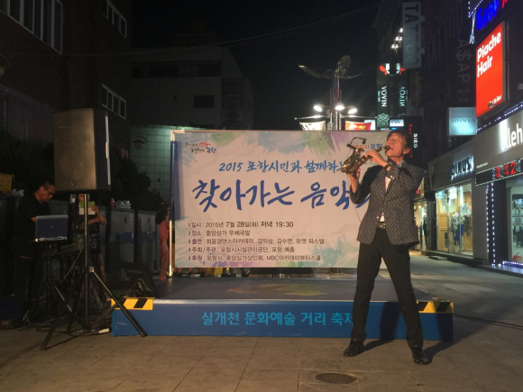 포항시시설관리공단이 28일 저녁 중앙상가 우체국 앞 야외상설무대에서 ‘포항시민과 함께하는 찾아가는 음악회’를 열어 다양한 볼거리를 제공했다.