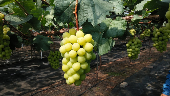 한편 샤인마스캇은 일본 농림과수시험장에서 스튜벤×마스캇오브알렉산드리아×백남을 교배해서 만든 품종으로 2006년 품종 등록된 황록색 포도로 당도가 높고 산도가 낮아 식감이 매우 우수하며, 보구성 및 저장성이 좋아 유통과 유리하고 직거래에 매우 적합한 품종으로 평가되고 있다. |