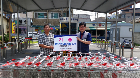 영주시는 (주)홈플러스 영주점(지점장 추광호)과 영주농업협동조합(조합장 남정순)이 전통시장에 쇼핑카트를 기증했다고 밝혔다.