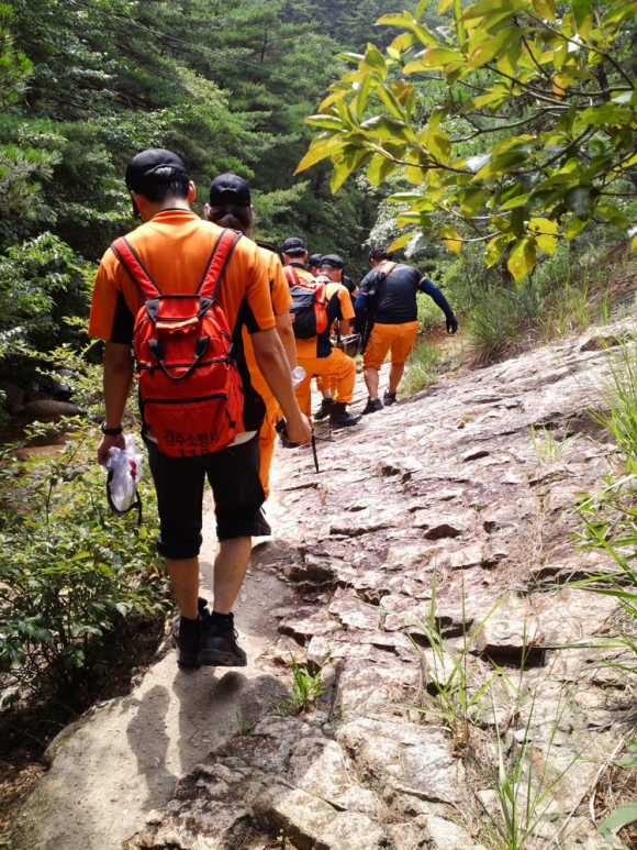 대원들은 발견 즉시 공기부목을 이용하여 현장응급처치 후 산악용 들것을 이용하여 하산, 구급대차를 이용하여 병원으로 안전하게 이송하였다.