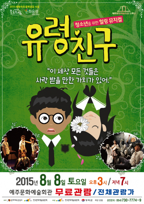 예주문화예술회관 관계자는 “힐링뮤지컬 ‘유령친구’는 온 가족이 함께 관람하기 좋은 작품으로 학교폭력 예방을 위해 특별히 초청한 만큼 청소년들과 가족단위로 많이 오셔서 즐겁게 관람하시길 바란다.”며 “더운 여름날 예주문화예술회관에서 시원하게 피서도 하며 즐거운 문화체험을 할 수 있는 기회가 될 것으로 기대된다.”고 전했다.