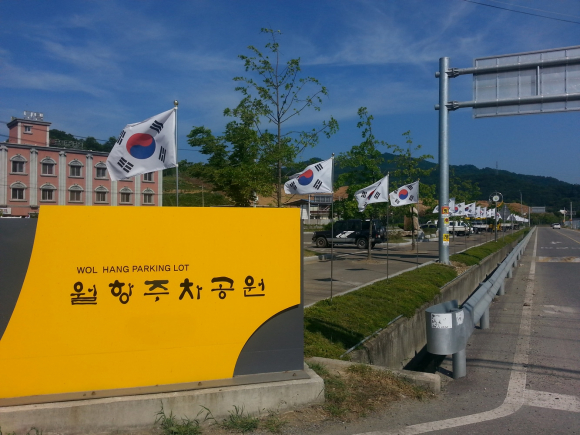 『월항주차공원(월항면 안포리 소재)은 광복이후 우리나라에서 경지정리사업을 처음 실행(1964년)한 곳으로 고(故)박정희 대통령이 시찰하여 관계자를 격려하는 등 조국 근대화를 위한 기계화영농기반의 초석이 된 역사적 의미가 깃든 곳으로 월항면은 제70주년 광복을 맞아 이번 태극기 및 무궁화 조성사업을 통하여 그 역사적 의미를 재조명하고 면민의 자긍심을 고취하는 계기로 삼고자 하였다.