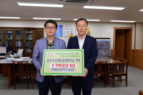 8월 4일 한국국토정보공사 영주지사(지사장 김호원)는 영주시인재육성장학회에 100만원을 장학금으로 기탁하였다.