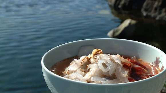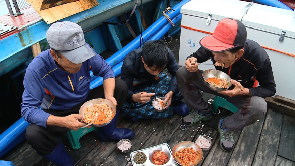 ■ 물회, 뱃사람들의 애환을 담다. 물회 하면 떠오르는 경북 포항. 지유수 씨는 할아버지 때부터 3대째 포항 구룡포에서 어부로 살고 있다. 지유수 씨가 주로 잡는 어종은 포항물회의 주재료인 참가자미. 매일 새벽 5시면 아내와 함께 바다로 나가 그물을 걷어온다. 시장기가 돌 때면 배 위에서 잡아 올린 참가자미 몇 마리 썰어 물회 한 그릇 뚝딱 말아먹는다. 물회는 그의 할아버지 때부터 배에서 먹던 어부들의 음식이었다. 한 끼를 대신해 먹기도 했고, 안주 삼아 술과 함께 마시기도 했으며, 술 마신 다음 날 후루룩 마시며 속을 달래기도 했다. 물회 한 그릇에는 뱃사람들의 삶의 애환이 고스란히 담겨있다.