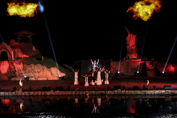 한편 이번 공연은 실경수상뮤지컬 장르에 적합되게 공연의 시스템인 ‘수상무대, 특수효과, 특수영상, 음향, 조명’을 강화하여 퍼포밍 아트쇼의 화려한 무대를 선보였다.
