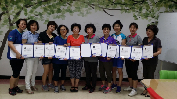 청림동 건강위원회 건강리더 10명이 주민역량 및 노인건강지도교육, 레크레이션 양성교육을 이수하고, 11일 레크레이션 지도사 1급 자격증을 취득했다.