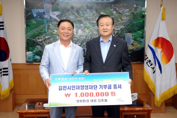 정화환경 김종철 대표, 김천시인재양성재단에 후원금 1백만원 쾌척