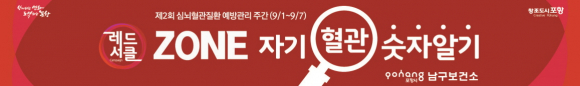 포항시 남구보건소가 제2회 심뇌혈관질환 예방관리주간(9.1~9.7)을 맞아 ‘레드서클(Red Circle), 자기혈관 숫자 알기’라는 슬로건 아래 다양한 홍보활동을 전개한다.