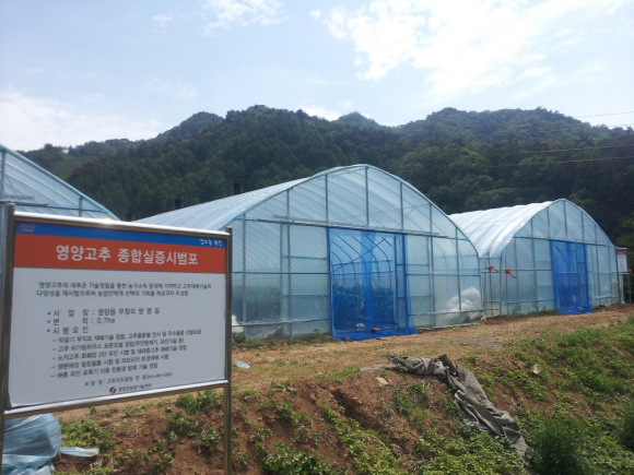 영양군농업기술센터는 새로운 고추재배기술을 정립하여 경영비와 자가 노동력을 경감하고, 단위면적당 수량성을 높이기 위해 농가실증시범포를 운영한 결과 관행농법에 비해 고소득화가 가능함을 확인했다.