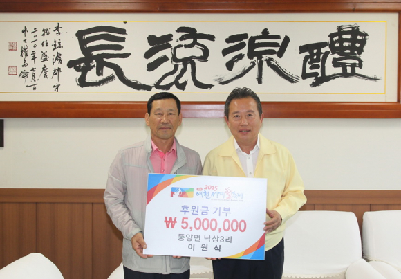 제2회 예천세계활축제의 성공을 기원하는 이들의 후원의 손길이 이어지는 가운데 지난 3일 풍양면 이원식 씨가 5백만 원을 기탁해 훈훈한 미담이 되고 있다.