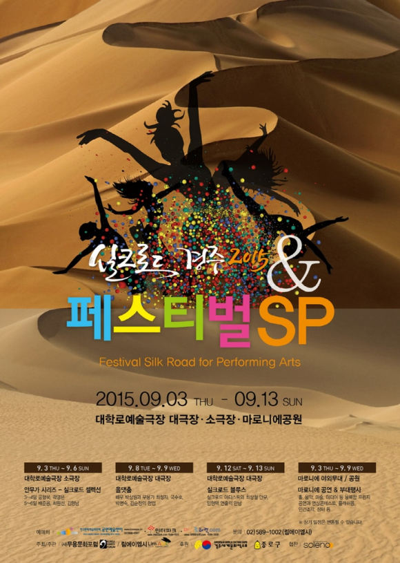 또한 축하공연으로는 웅장하고 경쾌한 50인조 브라스밴드의 공연이 마로니에 공원의 초가을 밤을 수놓아 이날 행사의 백미가 되었다. 3일부터 13일까지 11일 동안 대학로 일대에서 진행되는 ‘실크로드 경주 2015-페스티벌SP’는 가장 실험적이면서 가장 일상에 가까운 것을 위한 노력으로 현대무용과 세계 각국의 타 장르 아티스트들의 협업제작과 더불어 클래식과 팝음악, 영상과 문학, 테크놀로지가 망라되어 인간과 인간, 인류와 역사, 역사와 세계의 미래를 다루는 여러 작품이 소개된다.