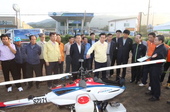 이강덕 시장은 “농가들이 일손부족과 가격경쟁으로 많은 어려움을 겪고 있다”며 “무인헬기, 드론 등 첨단기술과 IT기술 활용 등 스마트 농법을 이용해 농가들에게 실질적으로 도움을 줄 수 있는 정책을 적극 지원해 나가겠다.”고 말했다.