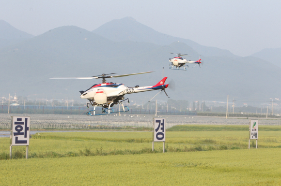 포항 친환경 쌀 생산단지에 무인헬기 이용 긴급방제 실시