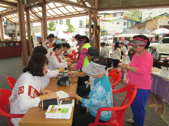 이날 행사에는 건강체험관을 운영하여 평소 의료기관 방문이 어려운 상인들과 시장을 찾는 주민들에게 건강관리를 위한 정보 제공으로 혈압, 혈당, 콜레스테롤 무료검사와 저염도 식생활실천을 위한 건강 식단전시, 미각(짠맛)검사 등 다양한 상담을 실시하여, 건강한 생활습관을 갖도록 유도하였다.