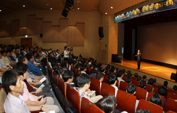 포항시가 9일 평생학습원 덕업관 대강당에서 기술직(시설, 공업, 녹지 등) 공무원 300여명이 참석한 가운데 창조도시 조기건설을 위한 ‘기술직 공무원 결의대회’를 가졌다.