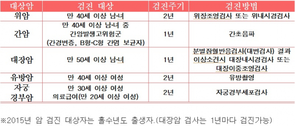2015년 국가암 검진 및 암환자 의료비지원사업 실시
