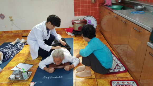 한편, 한방 진료를 받은 백석2리의 박○○씨(여/70세)는 “평소 허리 통증이 심해 오래 앉아 있기도 힘들었는데 침을 맞고, 한방약을 먹으면서 한결 가뿐해졌다. 읍내의 한의원에 갈려고 해도, 버스틀 타지 못해 갈 수 없었는데 직접 찾아와서 이렇게 침을 놔주니 얼마나 고마운지 모르겠다.”고 말하며 손을 꼭 잡아 주며 직접 만든 떡과 음식으로 진료팀을 따뜻하게 대접하며 감사의 마음을 전했다.