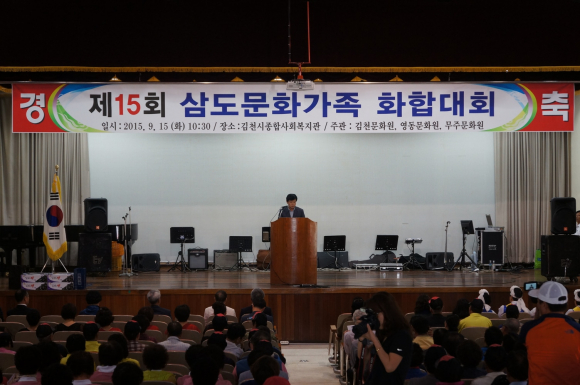경북 김천, 전북 무주, 충북 영동이 함께하는 제15회 삼도문화가족 화합대회가 15일 김천문화원 주관으로 김천시종합사회복지관 대강당에서 개최되었다.