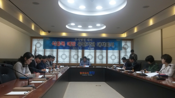 포항시가 17일 시청 중회의실에서 이재춘 부시장 주재로 경상북도 포항교육지원청, 포항시 남․북구보건소, 남․북구청 등 관계자가 참석한 가운데 ‘추석 대비 식중독 예방 관계기관 대책회의’를 가졌다.
