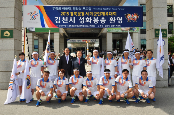김천시(시장 박보생)는 2015 경북문경세계군인체육대회의 성공을 기원하는 성화를 9월30일 봉송했다.