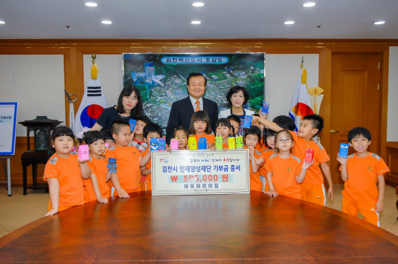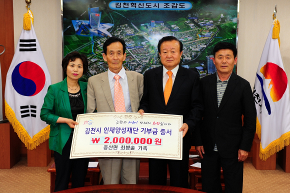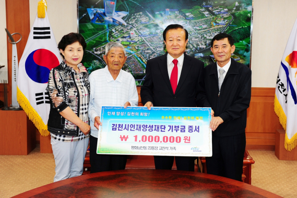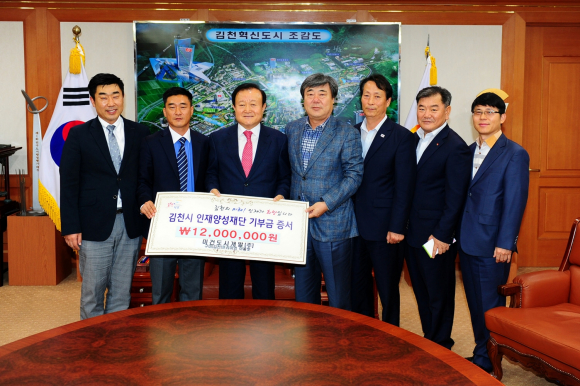 25일 미건도시개발(주)에서 1천2백만원의 장학금을 기탁함으로써 150억원의 기금을 모은 것이다. 지금까지 많은 분들의 기탁이 있었지만 특히 박보생 김천시장이 솔선하여 13,120천원을 기탁하였고, 김천혁신도시 이전공공기관인 한국전력기술(주)에서 1억원, 계양정밀 1천만원, 아포어린이집 영유아 50만원, 평화남산동 23통장 고진석의 부친인 고재수 옹의 백수연 축하금 1백만원, 증산면 솜씨마을위원장 최병술씨의 가족이 2011년부터 현재까지 1,440만원 기탁 등 의미 있는 기탁이 많이 있었다.