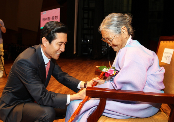 또한, 올해 100세가 되는 이선이 어르신에게 청려장(대통령이 드리는 장수지팡이)을 전수했다.