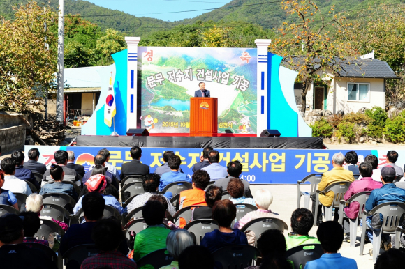 이날 기공식을 가진 문무저수지 건설사업은 농림축산식품부로부터 국비 54억원을 지원받고 시비 24억원을 포함 총사업비 78억원이 투입되며, 총 저수량 25만톤, 제당길이 220미터, 제당높이 32미터 규모로 2015년 10월 착공하여 2017년 7월에 준공 될 예정이다.