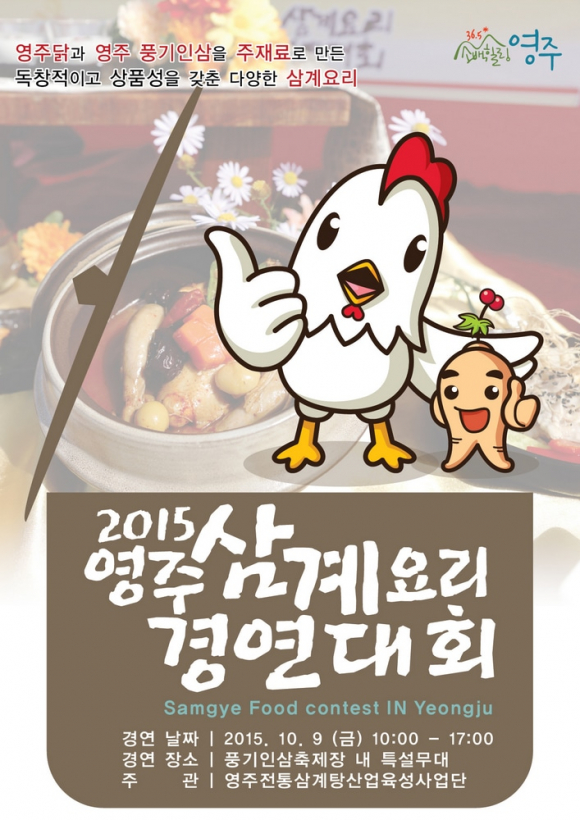 영주시전통삼계탕산업육성사업단이 10월 9일 풍기인삼축제장에서『2015영주삼계요리 경연대회』를 개최한다.