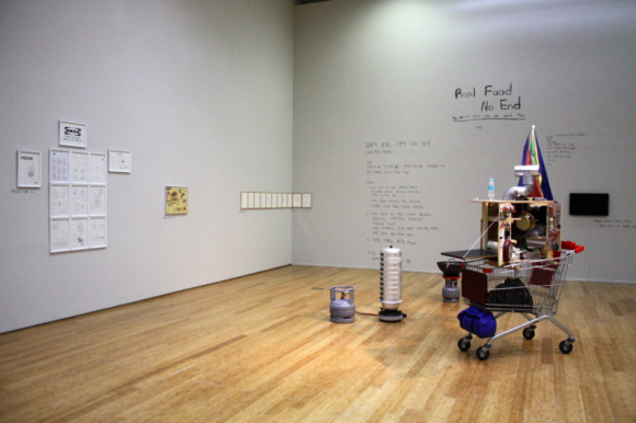 2전시실에서 진행되는 ‘모두를 위한 식탁’ 전시는 단순히 미각의 만족을 위한 ‘음식’이 아닌 사회 문화적 맥락에서 음식이 의미하는 바에 주목하고 있다. 요즘 방송매체에서 요리 프로그램들이 대세인 가운데 이런 현상들의 이면에는 ‘미각’이라는 인간의 원초적 감각을 자극하며, 정작 사유해야 하는 현실의 면면을 외면하게 하는 측면도 있을 것이다.