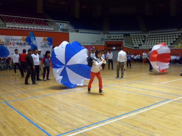 특히 이날 참석한 주요내빈과 읍면동위원장들의 친선게임인 ‘큰공굴리기’와 낙하산을 메고 반환점을 돌아오는 ‘낙하산 탈출’ 등 현장에서 펼쳐진 이벤트가 눈길을 끌었다.