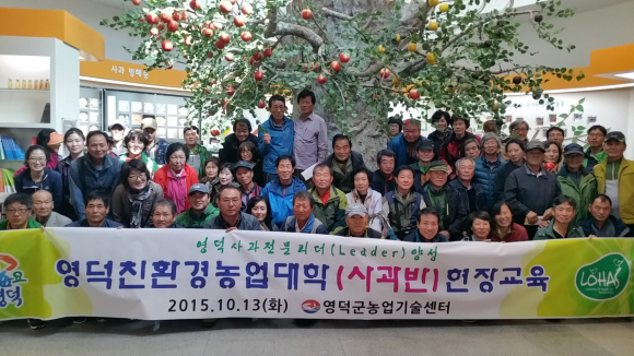 농업기술센터에서는 지난 3월 19일부터 ‘2015 영덕친환경농업대학(사과반)’ 과정을 개설해 지금까지 20회에 걸쳐 교육을 진행하고 있으며 12월 중순경 수료식을 가질 계획이다. |